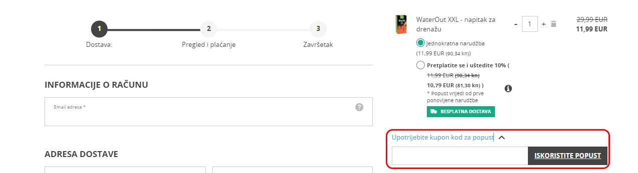 Kliknite na narančastu tipku „Iskoristi kupon/popust“. Bit ćete preusmjereni na trgovinu Sensilab.hr gdje možete obaviti kupnju kao obično.